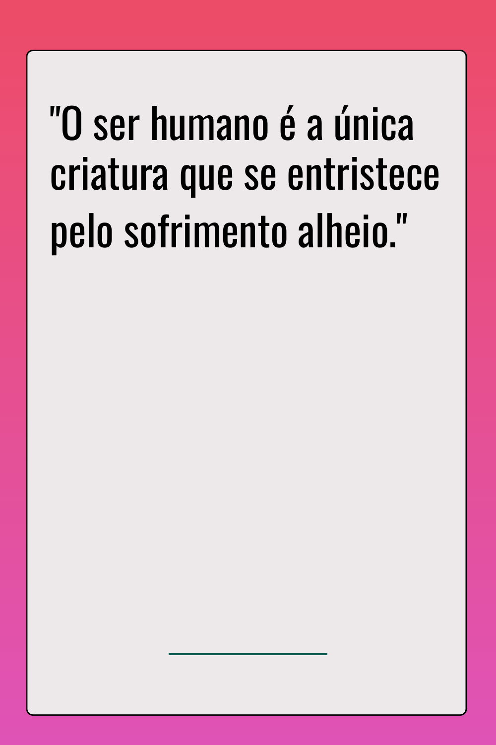 “O ser humano é a única criatura que se entristece pelo sofrimento alheio.”