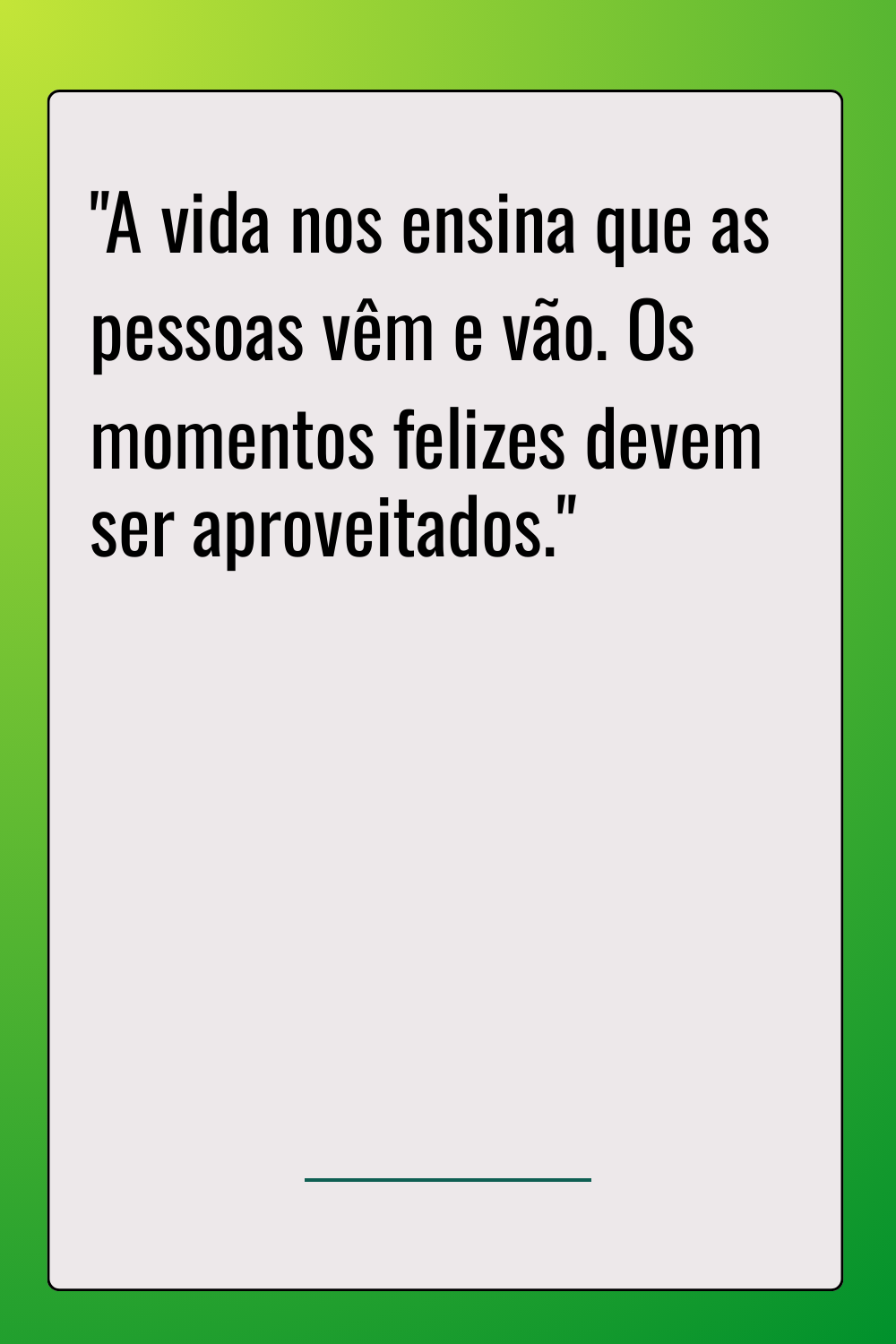 “A vida nos ensina que as pessoas vêm e vão. Os momentos felizes devem ser aproveitados.”