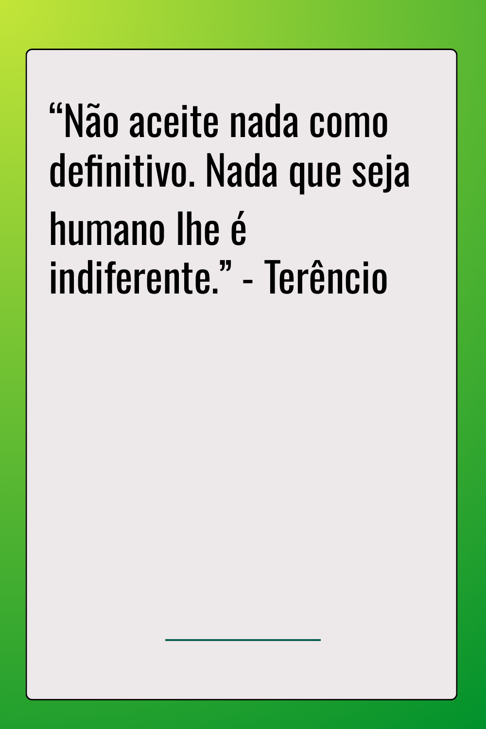 “Não aceite nada como definitivo. Nada que seja humano lhe é indiferente.” – Terêncio