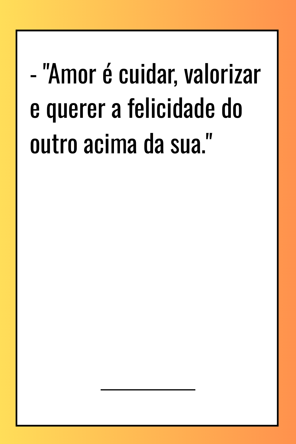 – “Amor é cuidar, valorizar e querer a felicidade do outro acima da sua.”