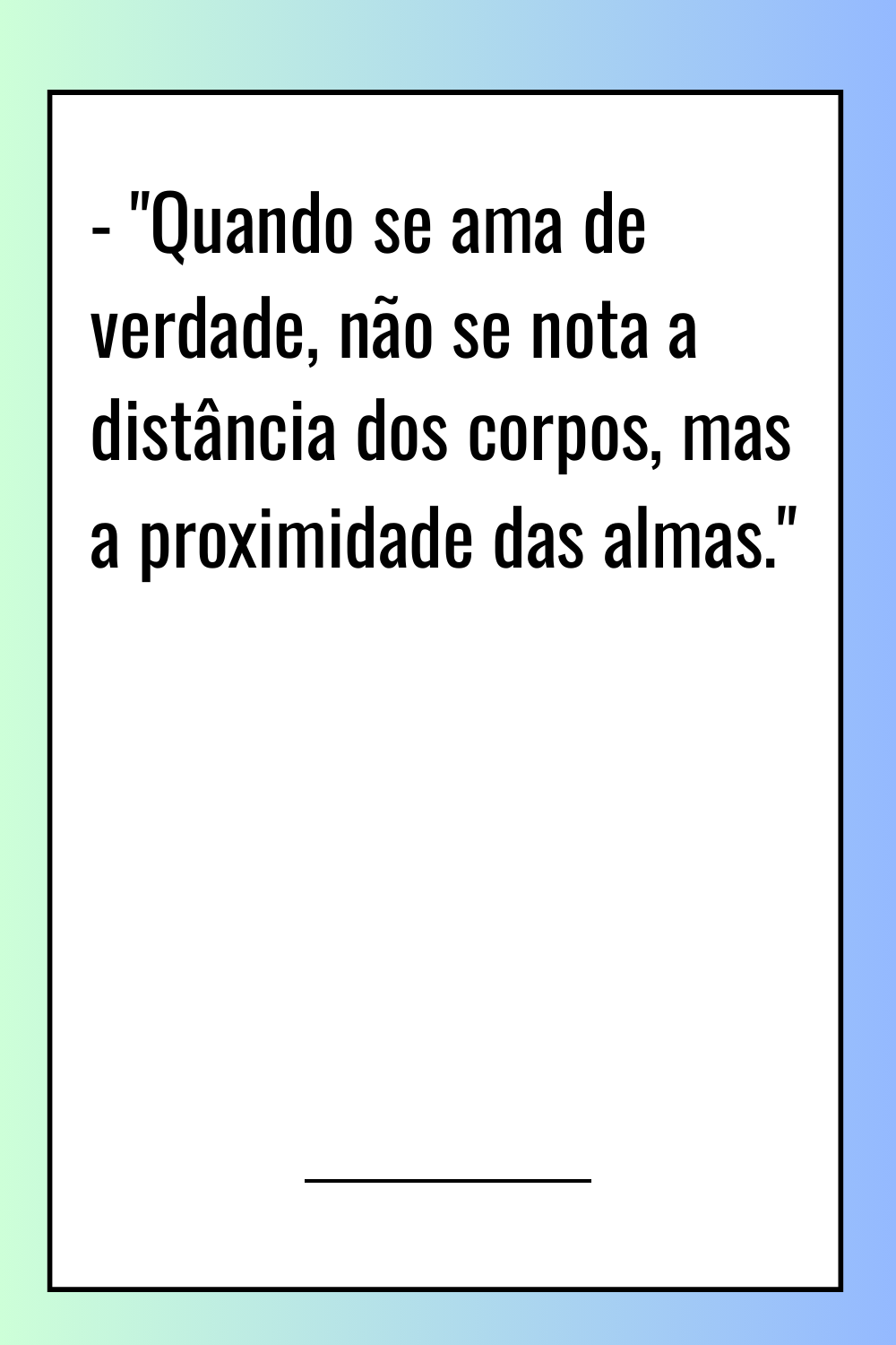– “Quando se ama de verdade, não se nota a distância dos corpos, mas a proximidade das almas.”