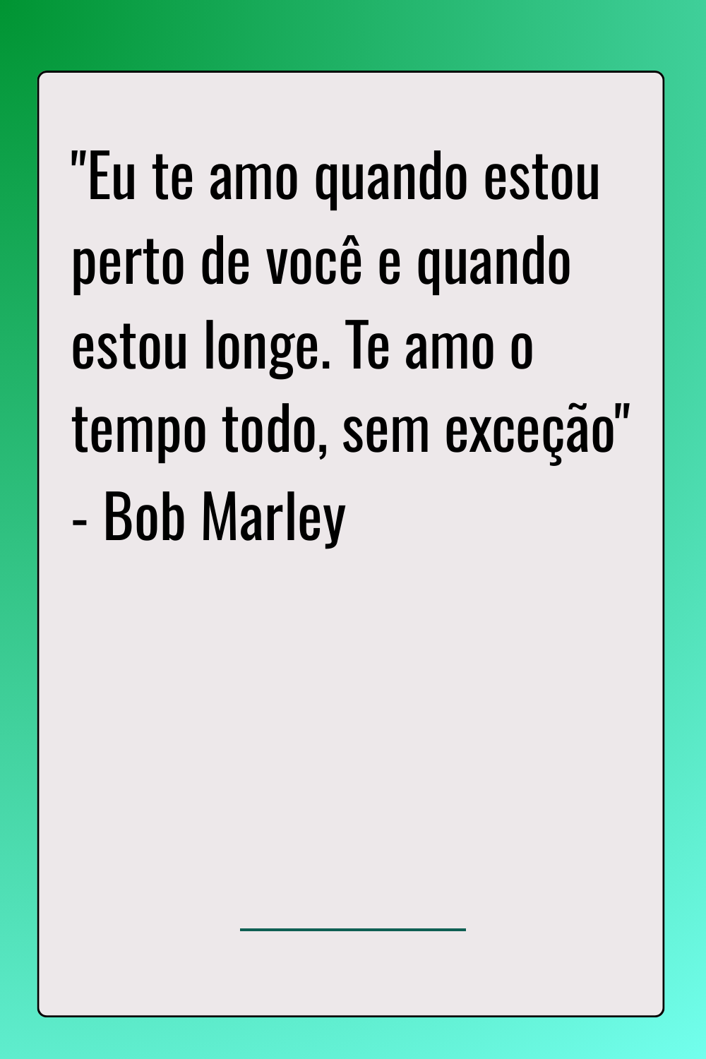 “Eu te amo quando estou perto de você e quando estou longe. Te amo o tempo todo, sem exceção” – Bob Marley