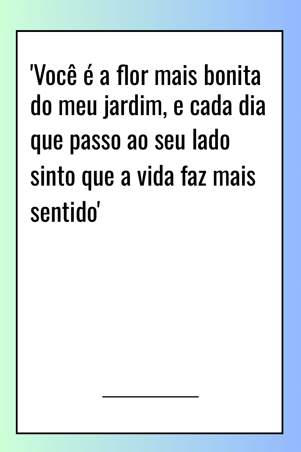 ‘Você é a flor mais bonita do meu jardim, e cada dia que passo ao seu lado sinto que a vida faz mais sentido’