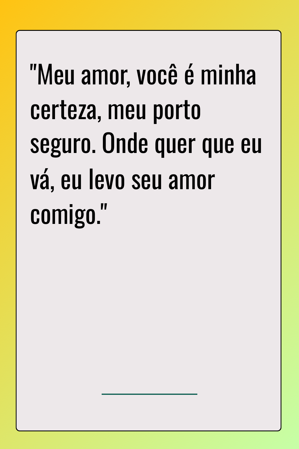 “Meu amor, você é minha certeza, meu porto seguro. Onde quer que eu vá, eu levo seu amor comigo.”